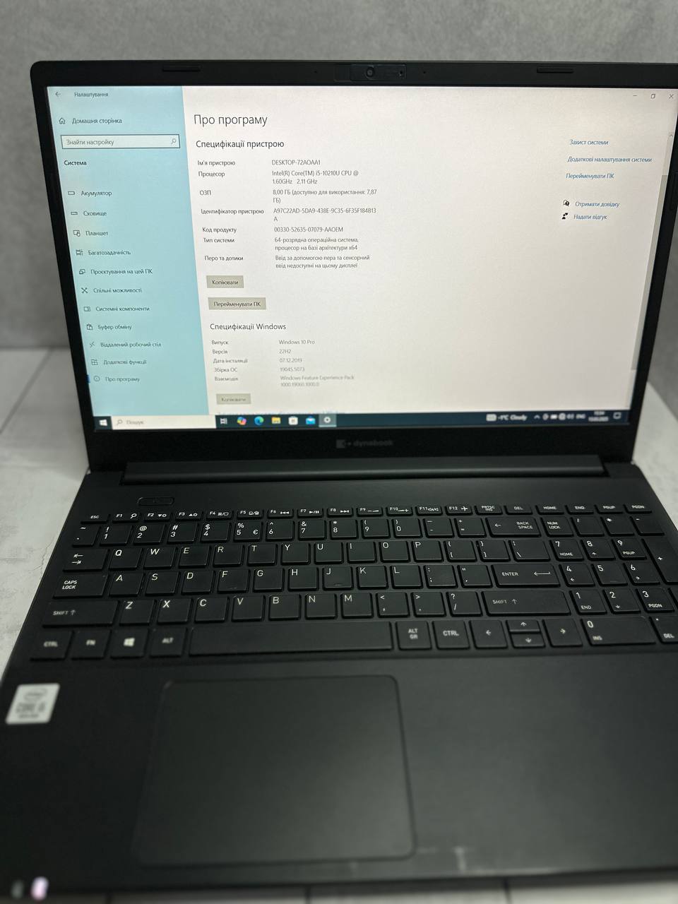 • Процесор: Intel Core i5-10210U (4 (8) ядра по 1.6 – 4.2 GHz), 6 MB Smart Cache;